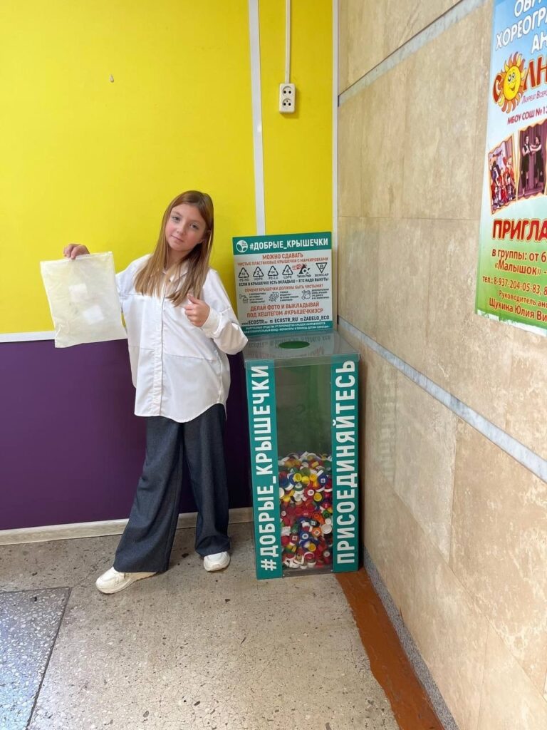 ️Наша ученица Белим Полина из 4 «В»класса не просто знает, а уже вовсю их собирает в рамках крутого регионального проекта «Добрые крышечки»!