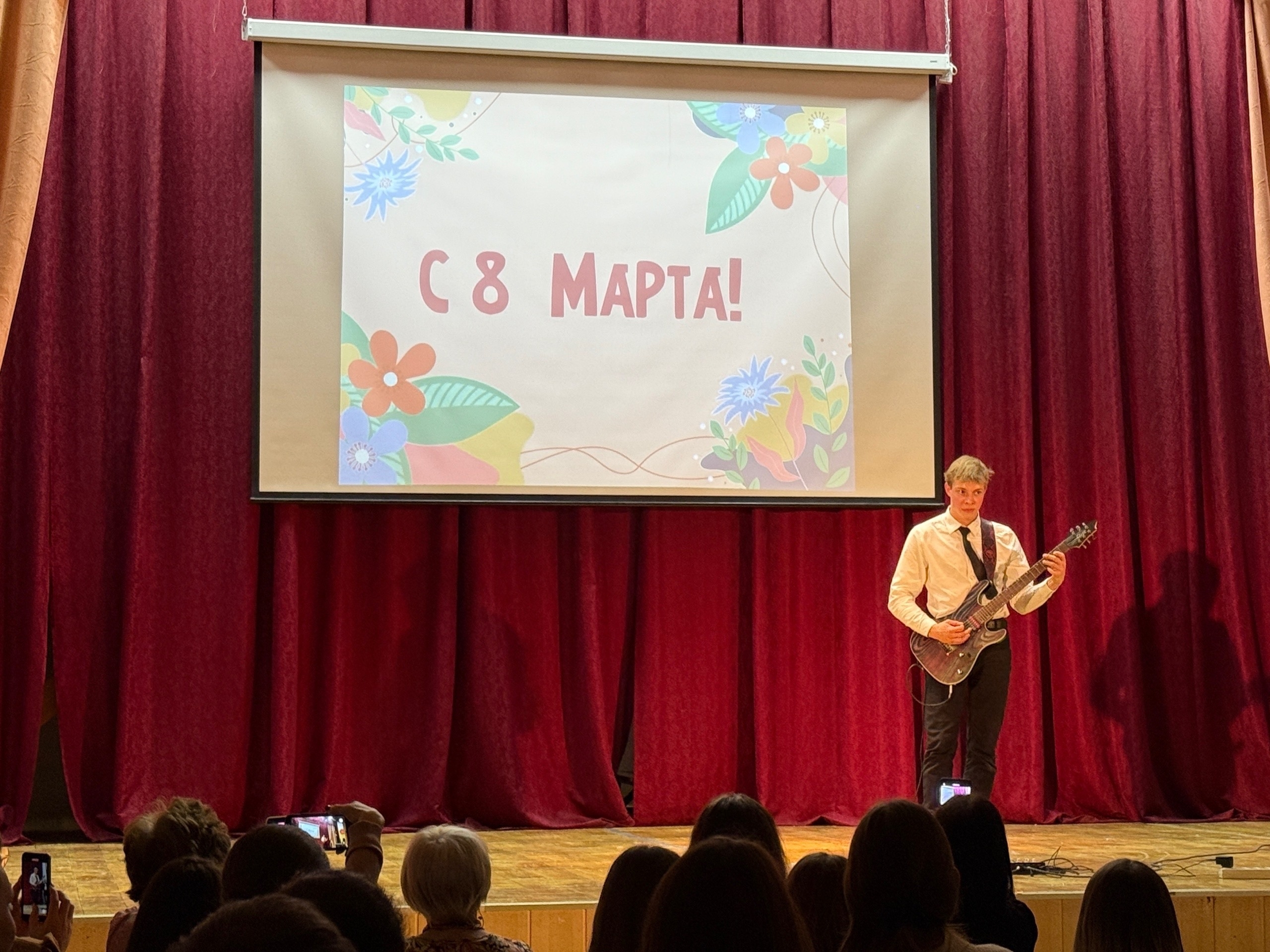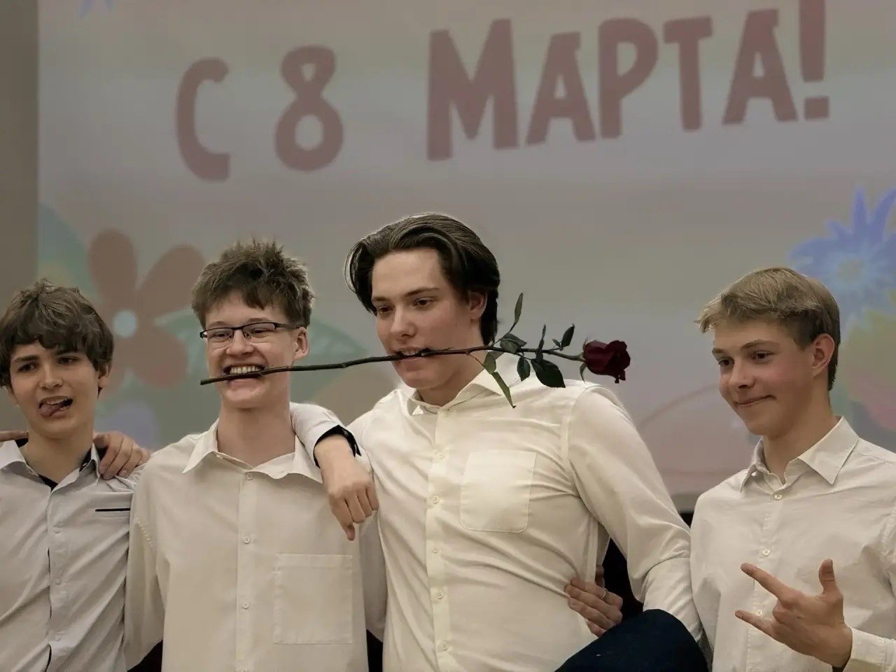 Концерт к 8 Марта удался! Море цветов, улыбок и творческих номеров.Сегодня хочется сказать отдельное спасибо тем, кто держал в руках «руль» всего мероприятия — нашим харизматичным ведущим Владу,Лёше,Тимуру и Саше . Легкость и остроумие — вот ваш ключ к успеху!Особая благодарность нашим музыкантам: Елисей Иванов и Александр Романов доказали, что в нашей школе учатся настоящие профессионалы. Ваши номера стали жемчужинами концерта!