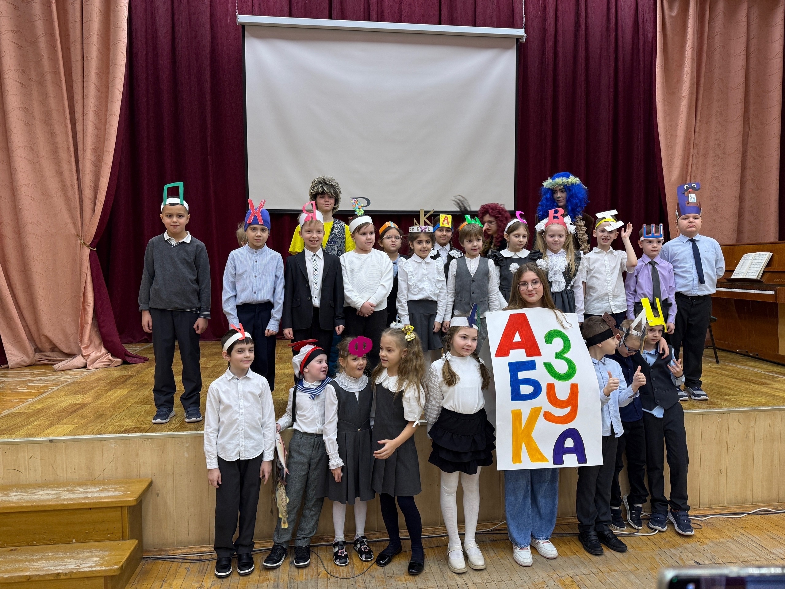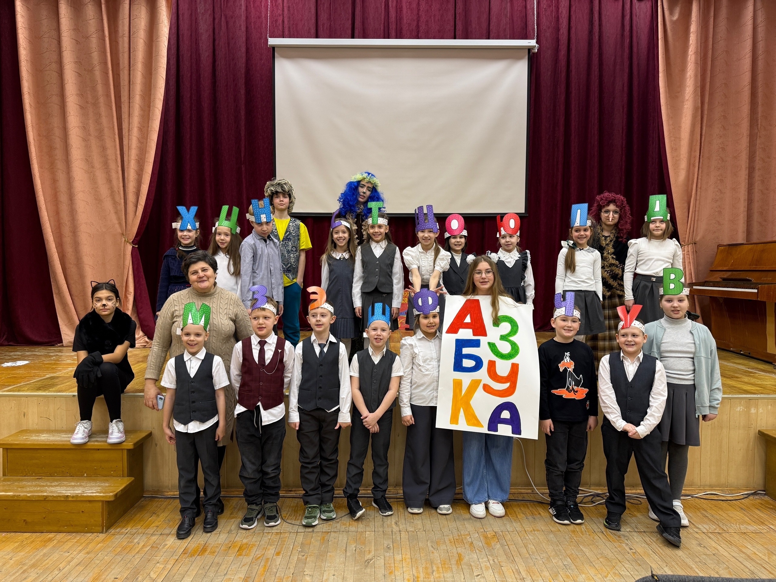В гости к ребятам пришли самые неожиданные персонажи: озорной Нафаня, мудрый Кот Ученый, сказочная Кикимора и, конечно, неугомонная Баба Яга пыталась запутать следы и устроить проверку на сообразительность. Но главной героиней, безусловно, была сама королева праздника — Азбука!